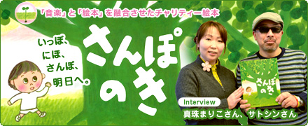 震災後、絵本ナビが行った被災地支援プロジェクト「絵本エイド」にいち早く参加を申し出てくださり、被災地への活動にもエールを送り続けてくれたサトシンさんと真珠まりこさんが、この『さんぽのき』を通して伝えたかった思い、この絵本に関わった全ての方の思いを伺いました。
