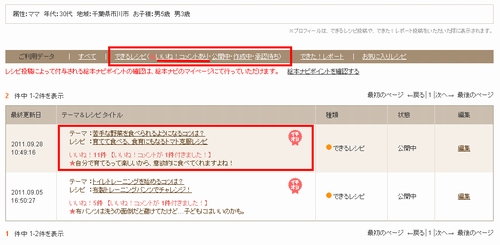 あなたの「できるレシピ」に届いたみんなからの「いいね!」コメントを、自分の「マイページ」で確認できるようになりました!