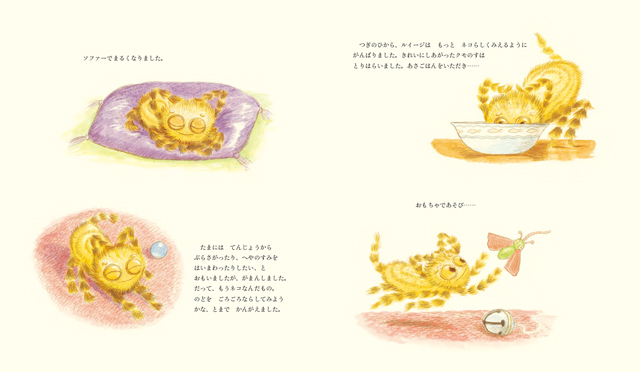 クモは困ってしまいます。だって自分の名前はどう考えても、ルイージではありませんし、どう考えても、ネコではないのです。それでも、なんだか悪い気もしないのです。
