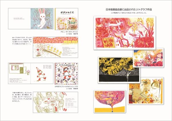 こぐま社の編集者さんにもそう言われて、何とか出したのがこの『子どものアトリエ 絵本づくりを支えたもの』です。この本は、私が初めて書いた文字の本……というと変だけど、エッセイのようなものです。文章もたくさん書きましたが、絵本を描くきっかけになったリトグラフの作品や、『わたしのワンピース』のラフスケッチ、あと、私の略年譜などカラーページも充実していると思います。