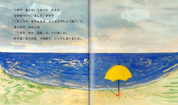 海辺に毎朝流れ着く、いろいろな「モノ」たち。それをすべて受け入れ、「朝の海辺が大好き」と言う女の子。にぎやかで楽しいナンセンスとは対照的な、「静かなナンセンス」。長先生にとっても新しいことにチャレンジなさった作品です。製作中はそのお手伝いをさせていただくことに、私自身もとても興奮していました。