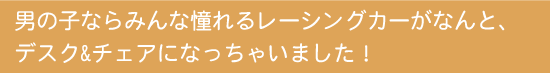 男の子の憧れのレーシングカーが、デスク&チェアになっちゃった!?
